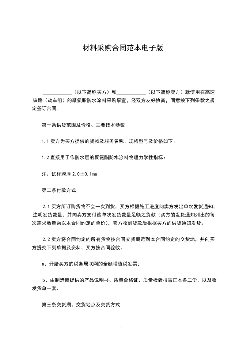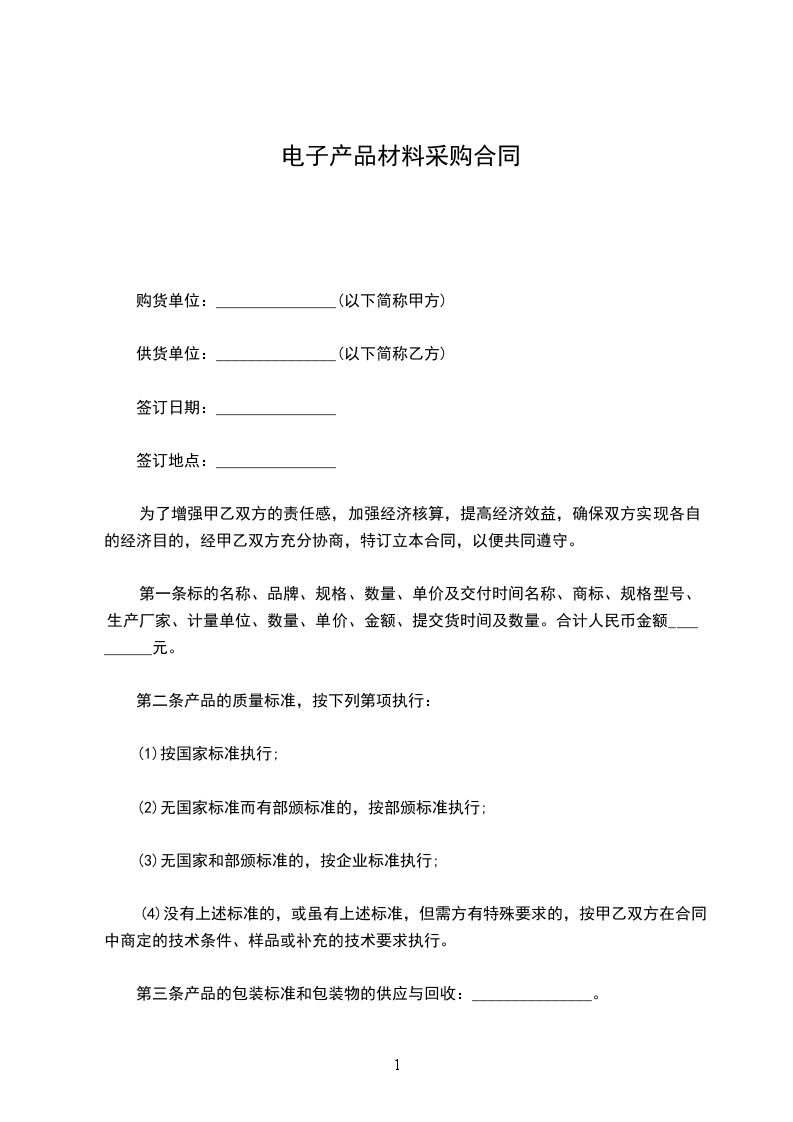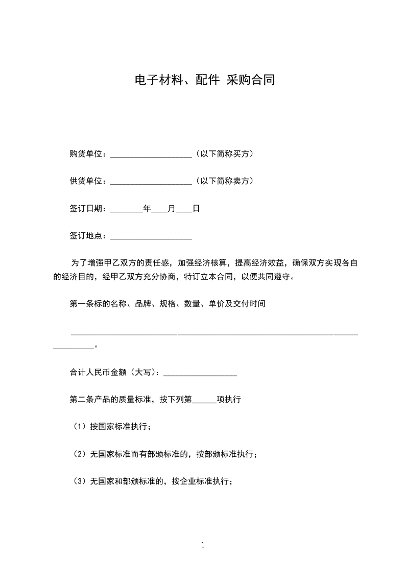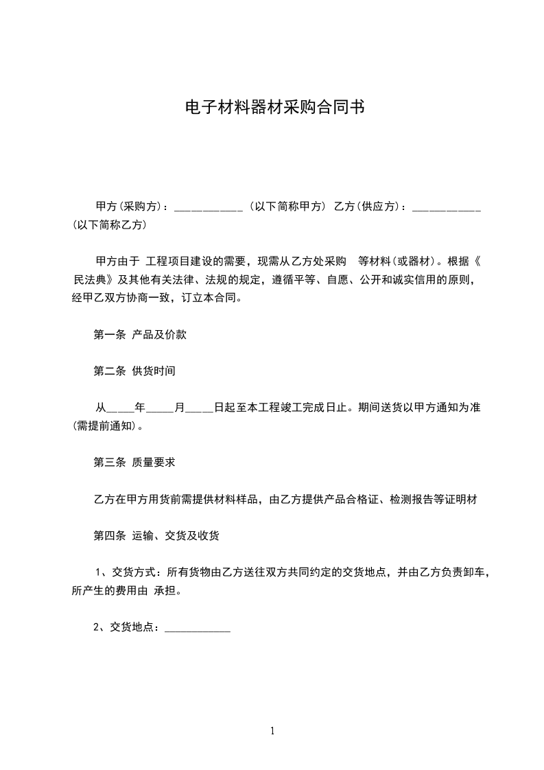第一条标的名称、品牌、规格、数量、单价及交付时间名称、商标、规格型号、生产厂家、计量单位、数量、单价、金额、提交货时间及数量。合计人民币金额__________元。