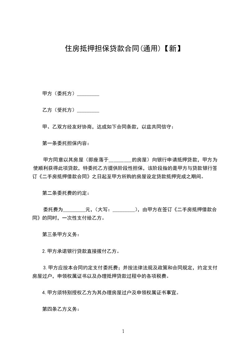 委托费为_________元,(大写:_________),由甲方在签订《二手房抵押借款合同》的同时,一次性支付给乙方。