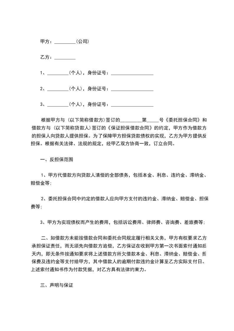 3、任何时候,反担保人均不得以甲方未积极行使追索权等为由要求减轻或免除反担保责任。