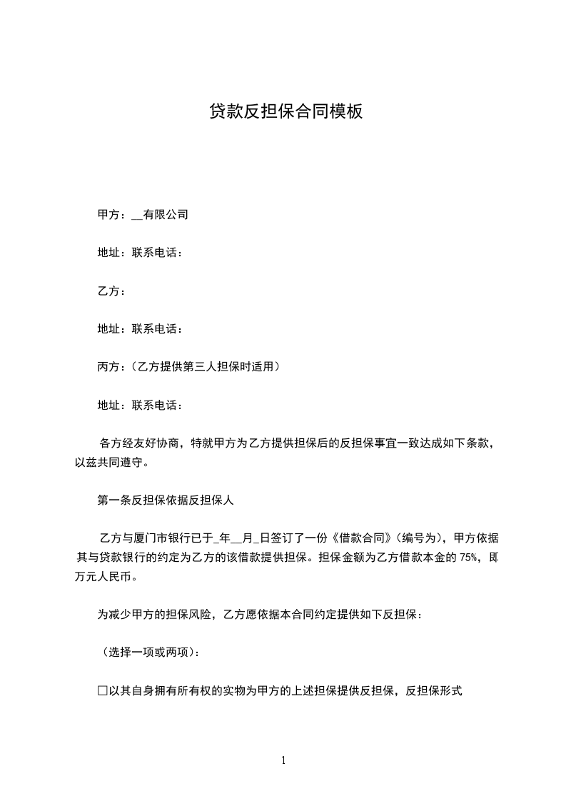 □提供丙方为反担保人,反担保形式为(抵押、质押或保证)。