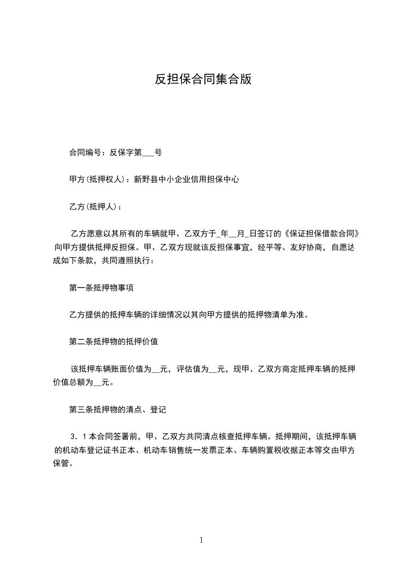 乙方愿意以其所有的车辆就甲、乙双方于_年__月_日签订的《保证担保借款合同》向甲方提供抵押反担保。甲、乙双方现就该反担保事宜,经平等、友好协商,自愿达成如下条款,共同遵照执行:
