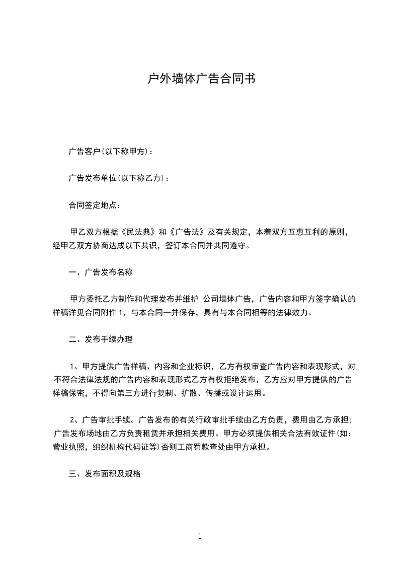 甲方委托乙方制作和代理发布并维护 公司墙体广告,广告内容和甲方签字确认的样稿详见合同附件1,与本合同一并保存,具有与本合同相等的法律效力。