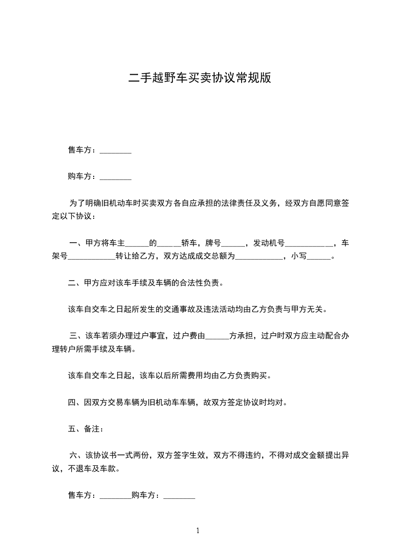 六、该协议书一式两份,双方签字生效,双方不得违约,不得对成交金额提出异议,不退车及车款。