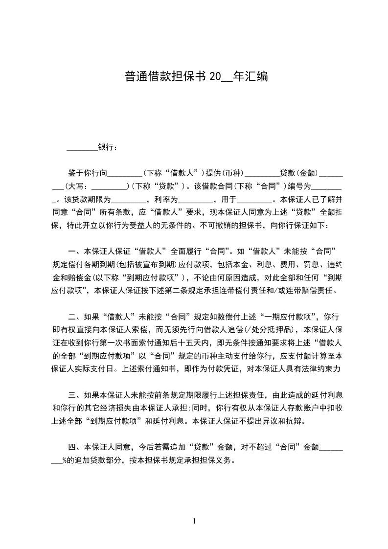 四、本保证人同意,今后若需追加“贷款”金额,对不超过“合同”金额_________%的追加贷款部分,按本担保书规定承担担保义务。
