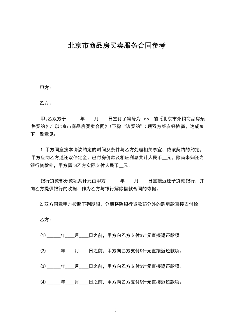 (4)______年____月____日之前,甲方向乙方支付%计元直接返还款项。