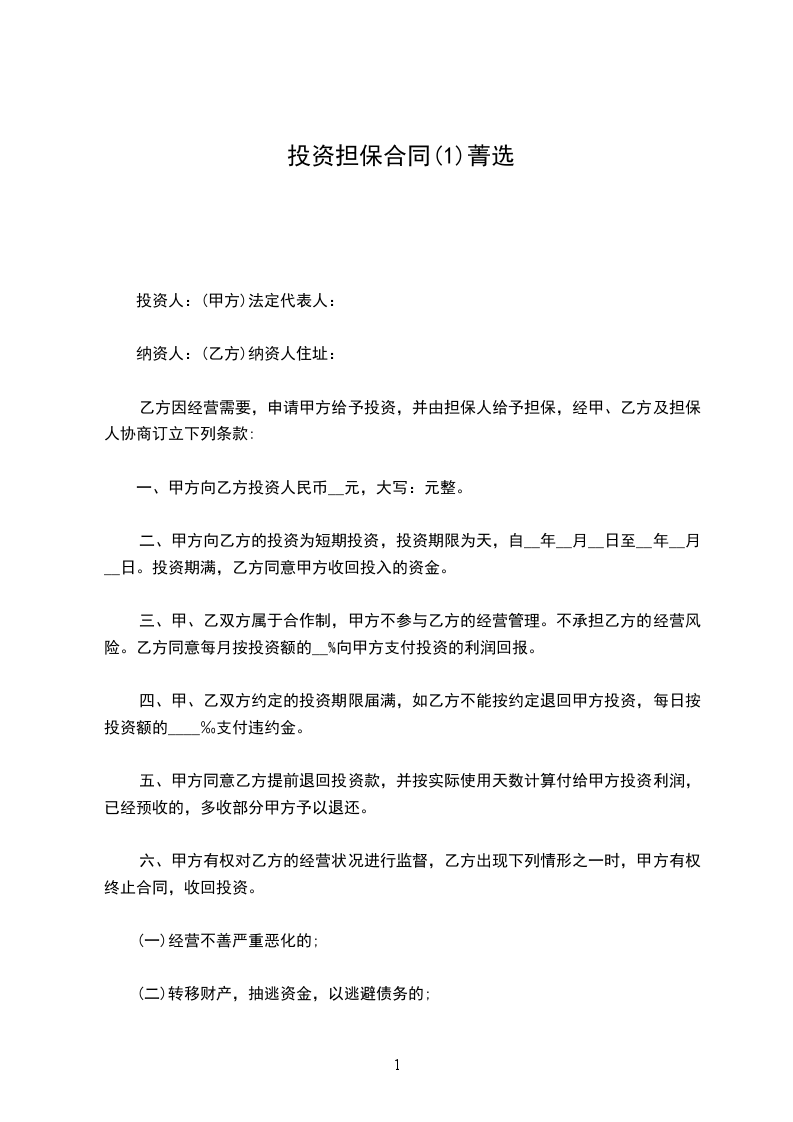 鉴于:_________(甲)担保权人拟投资于_________(“项目企业”的名称和主要业务地);_________(乙)作为这一投资安排的一部分,担保权人于_________年_________月_________日业已与_________(东道国)政府缔结了_________(担保协议的名称),其核准副本业已提供给多边机构;_________(丙)担保权人业已向多边机构申请担保与这一投资及其担保协议有关的某种非商业风险;以及_________(丁)多边机构,经东道国政府的同意,业已同意按以下所规定的条件,提供该担保;有鉴于此,有关各方协议如下: