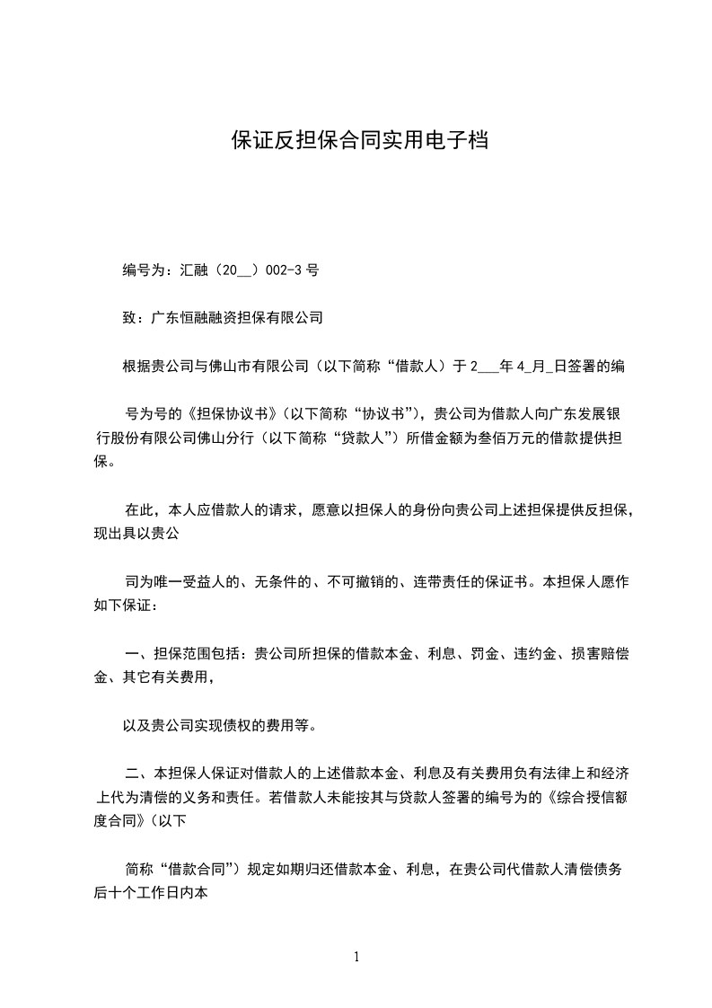 1、乙、丙双方已签订《委托保证合同》,约定由乙方为丙方向(以下简称债权人)申请的为期_____年,金额计人民币大写_____万元(小写_____元)的贷款提供连带保证担保。