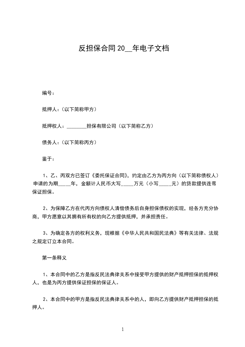 1、本合同中的乙方是指反民法典律关系中接受甲方提供的财产抵押担保的抵押权人,也是为丙方提供保证担保的保证人。