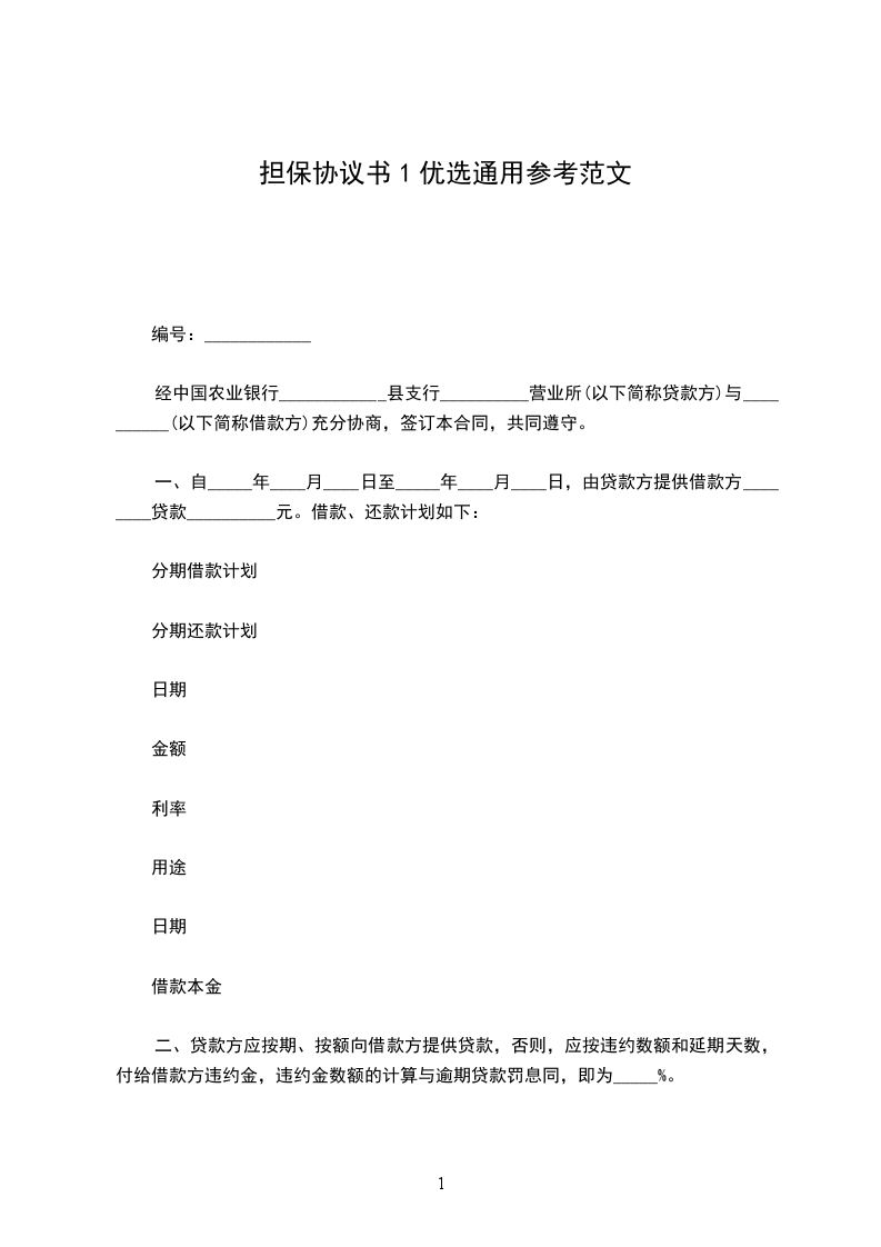 二、贷款方应按期、按额向借款方提供贷款,否则,应按违约数额和延期天数,付给借款方违约金,违约金数额的计算与逾期贷款罚息同,即为_____%。