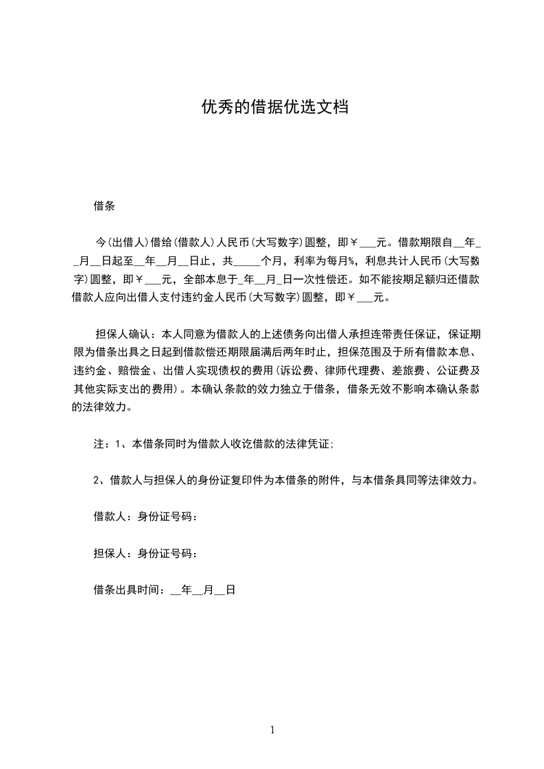 今借到人民币__元整(¥: