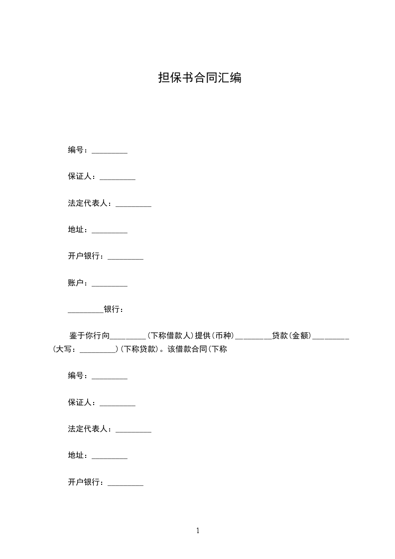 1、保证人一次向分公司缴纳保证金__元;工程总价的__%。