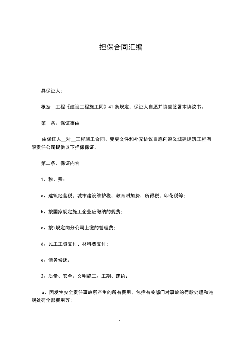 由保证人__对__工程施工合同、变更文件和补充协议自愿向遵义城建建筑工程有限责任公司提供以下担保保证。
