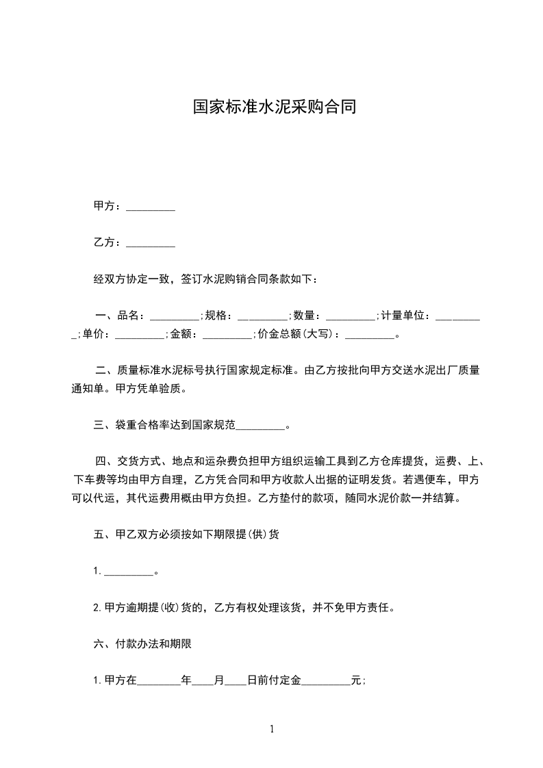 二、质量标准:水泥标号执行国家规定标准。由乙方按批向甲方交送水泥出厂质量通知单。甲方凭单验质。