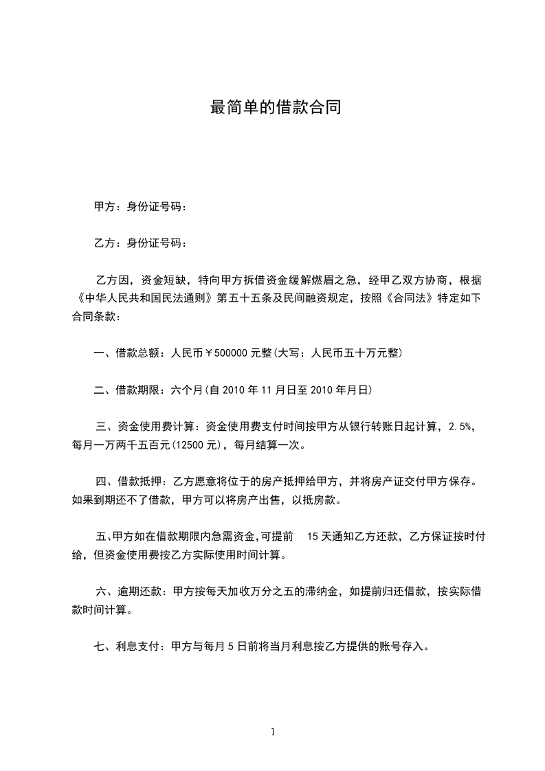 一、借款总额:人民币¥500000元整(大写:人民币五十万元整)