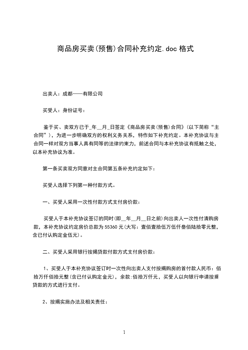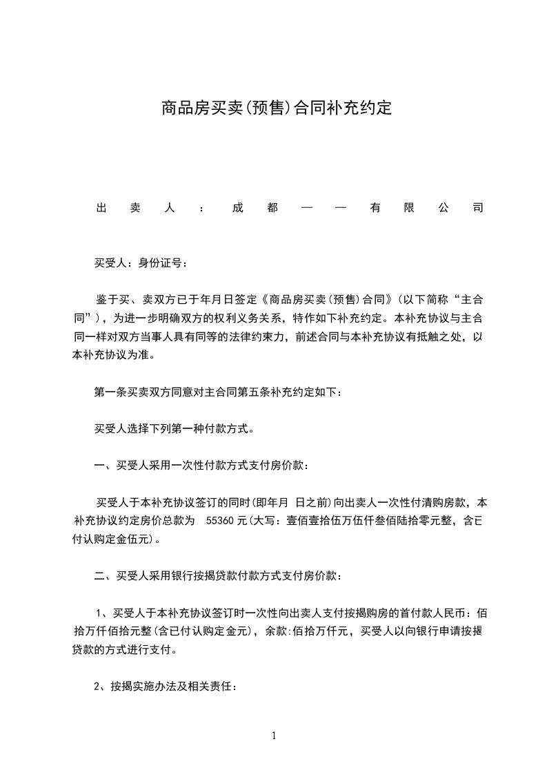 1、该房屋总价格为人民币__元整,协议签定之后,首付金。