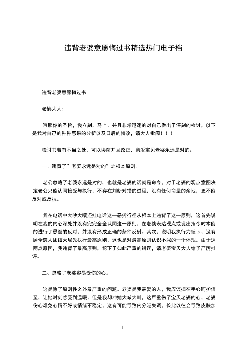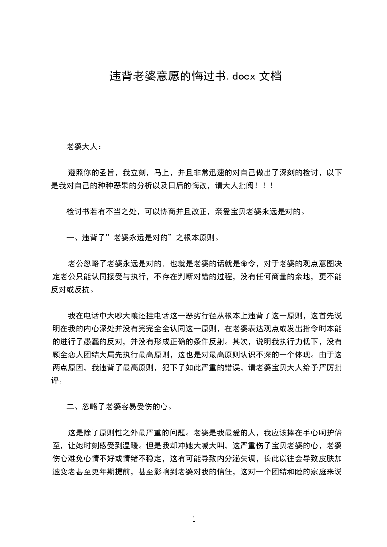 违背老婆意愿悔过书