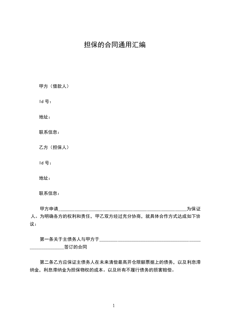 第一条关于主债务人与甲方于___________________________________________________________签订的合同