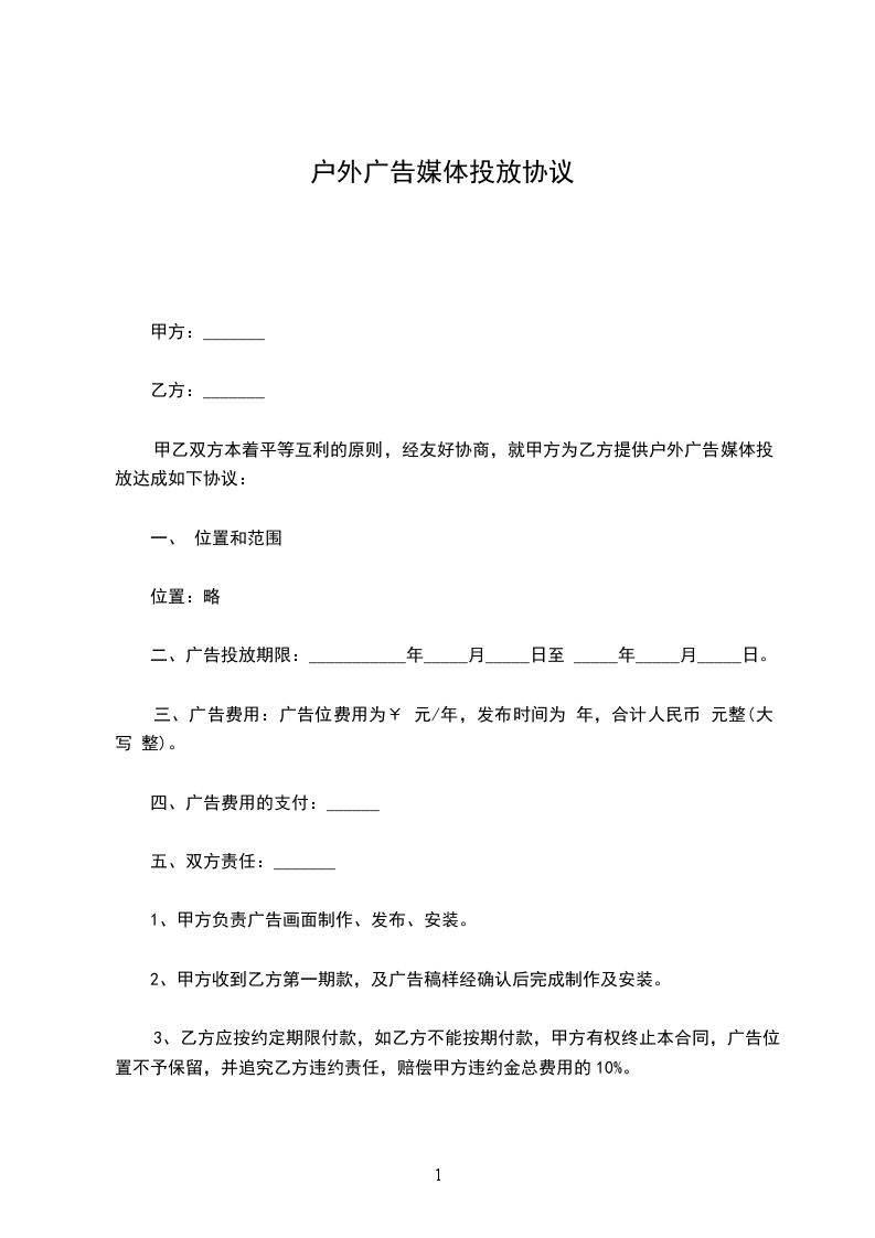 二、乙方保证,在_________年的发布期限内,不撕毁、损坏、破坏甲方发布的广告,如果因其他原因导致广告破损或脏污,及时向甲方联系并更新。