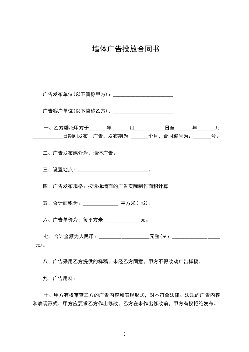 一、乙方同意甲方在________________(车牌号)车的车厢两侧发布广告,期限为______年,具体时间为______年_____月_____日到______年_____月_____日。