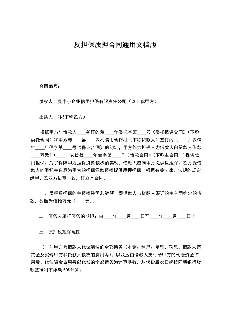 根据甲方与借款人__签订的荣__年委托字第__号《委托担保合同》(下称委托合同)和甲方与__县__农村信用合作社(下称贷款人)签订的(__)农信社__年保字第__号《保证合同》的约定,甲方作为担保人为借款人向贷款人借款__万元[(__)农信社__年借字第__号《借款合同》(下称主合同)]提供信用担保。为了保障甲方担保贷款债权的实现,借款人应向甲方提供反担保。乙方受借款人的委托并自愿为甲为的担保贷款债权提供质押担保。根据有关法律、法规的规定,经甲、乙双方协商一致,订立本合同。