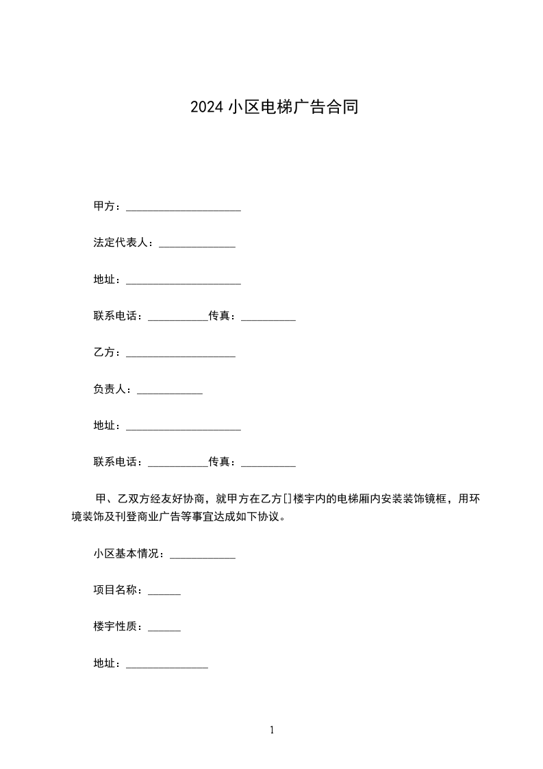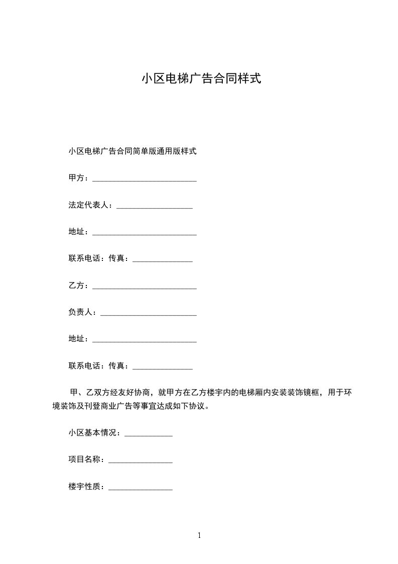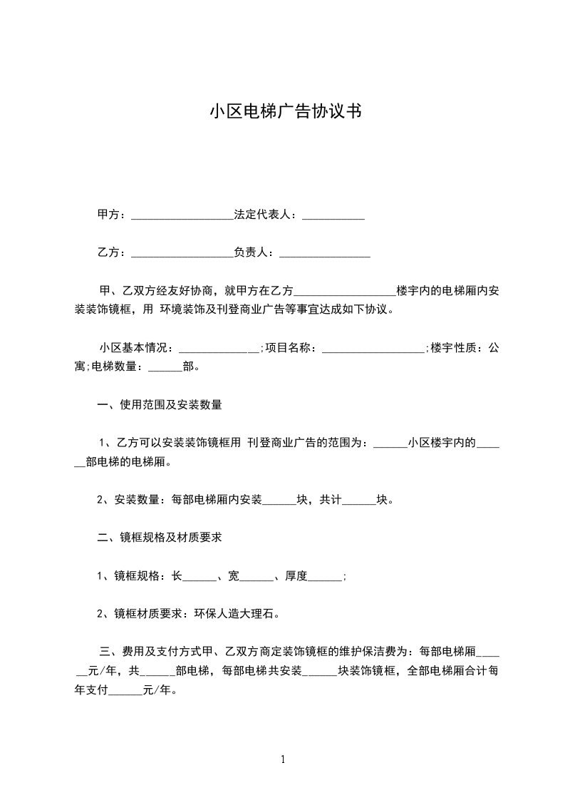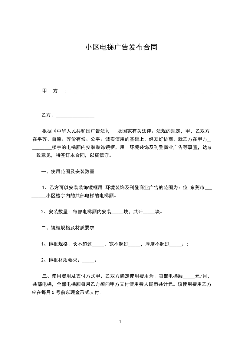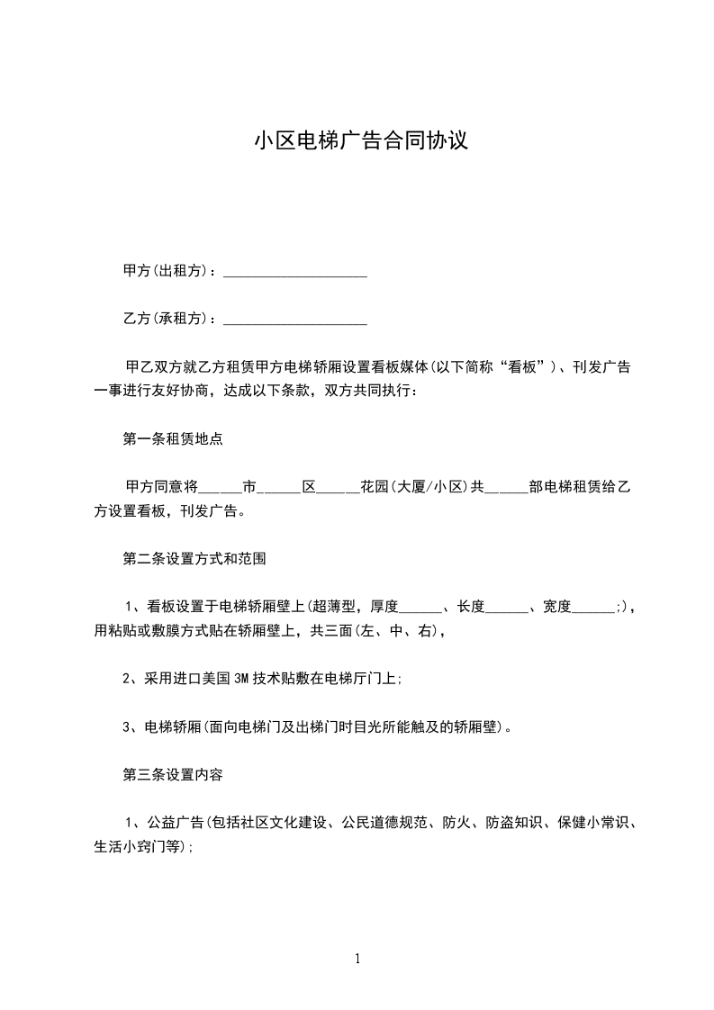 甲方同意将______市______区______花园(大厦/小区)共______部电梯租赁给乙方设置看板,刊发广告。