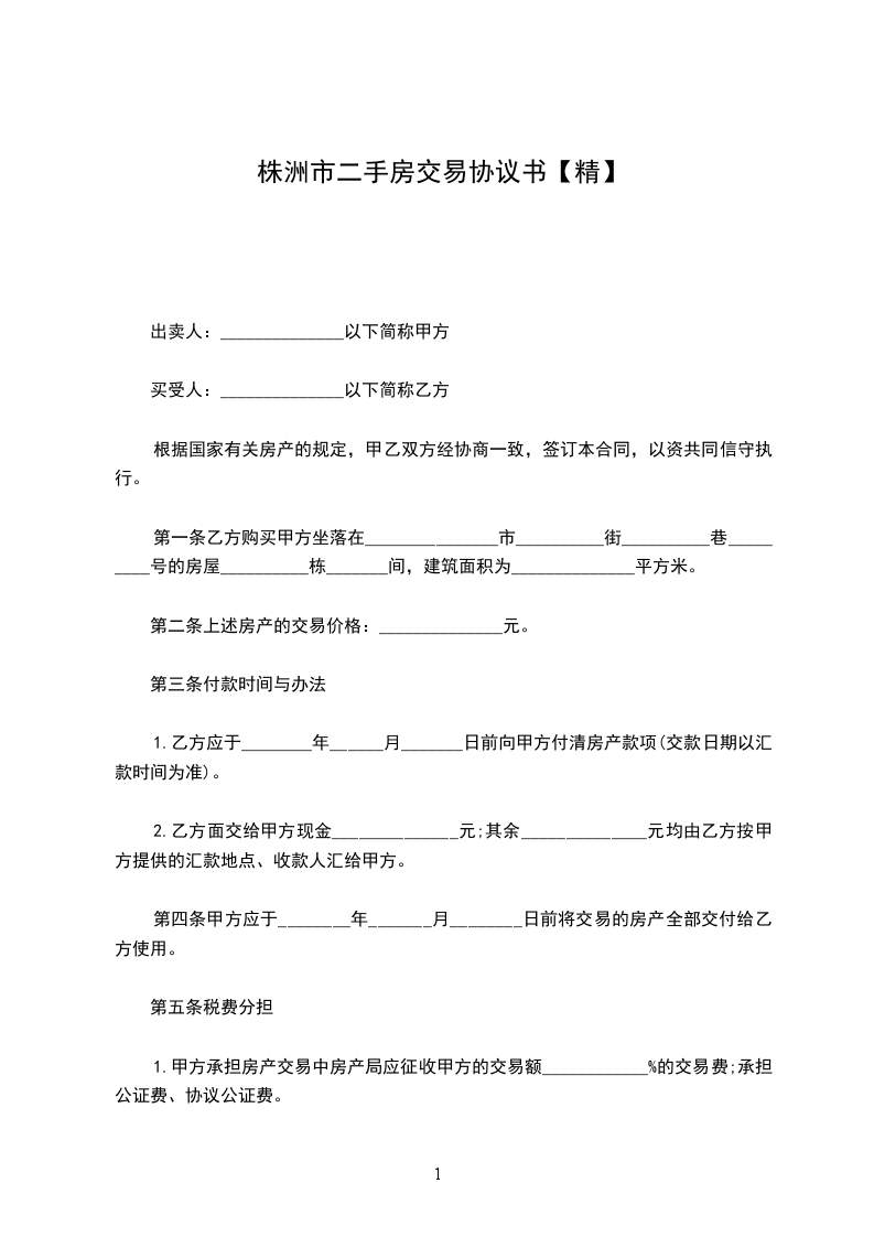 1.甲方承担房产交易中房产局应征收甲方的交易额____________%的交易费;承担公证费、协议公证费。