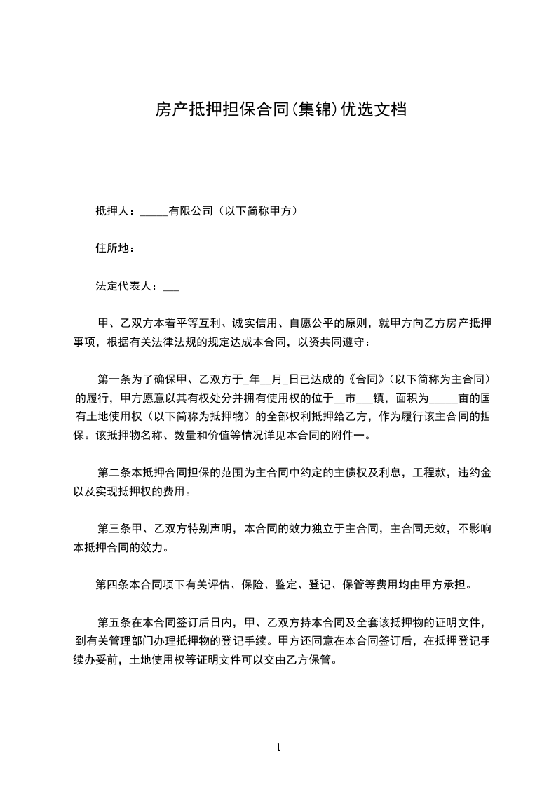 甲、乙双方本着平等互利、诚实信用、自愿公平的原则,就甲方向乙方房产抵押事项,根据有关法律法规的规定达成本合同,以资共同遵守: