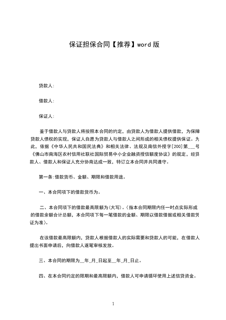 第一条甲方保证担保的贷款金额(大写)____________元,货款期限自______年______月______日至______年______月_____日。