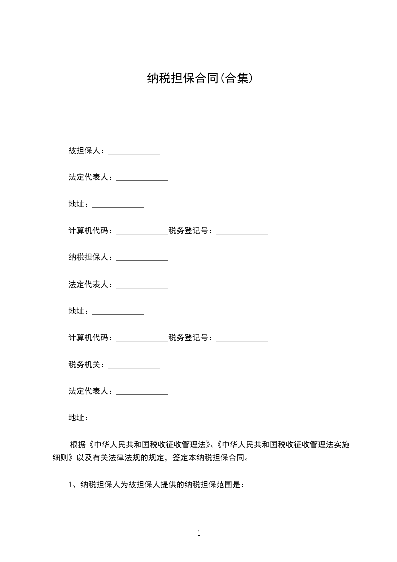 根据《中华人民共和国税收征收管理法》、《中华人民共和国税收征收管理法实施细则》以及有关法律法规的规定,签定本纳税担保合同。