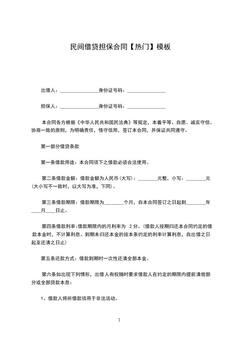 一、乙方同意就甲方与_________(以下称借款人)之间签订的《借款合同》(编号:_________年_________字第_________号)向甲方提供担保。