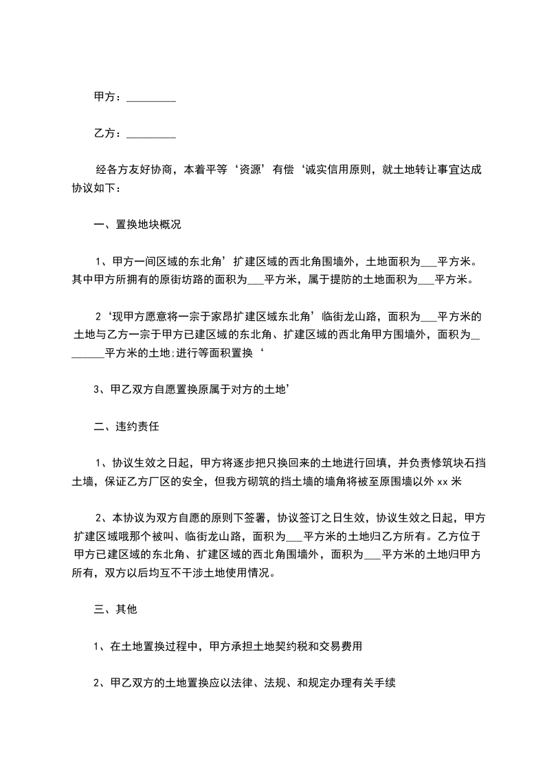四、在此交易之前如果该地已被政府征收,甲方则无条件退回所有交易款项,并以该款项的国有商业银行同期存款利率赔偿给乙方。