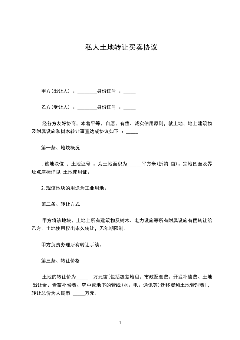一、付款方式:双方协议办理转让手续后,乙方一次性交清购地款给甲方。
