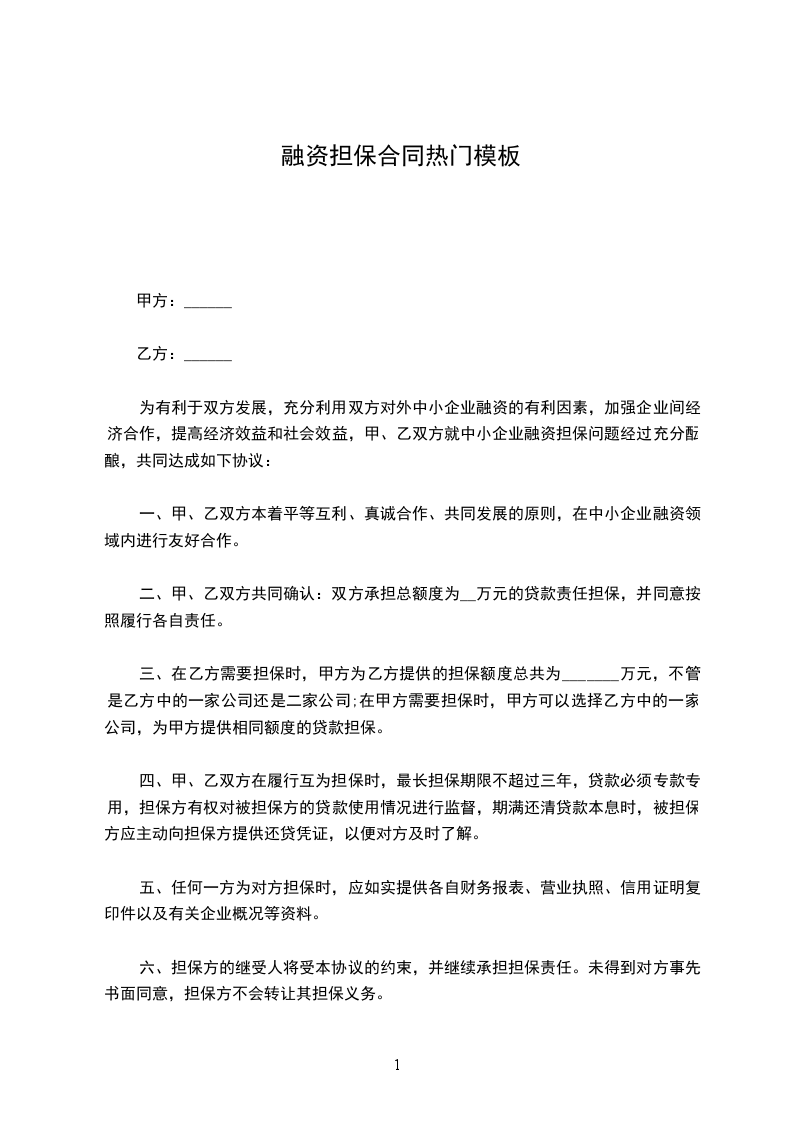 甲方需向融资,请求乙方为其融资提供担保,为明确双方的权利和义务,根据我国《中华人民共和国民法典》及相关法律、法规,经双方协商一致,特订立本合同,以便双方共同遵守。