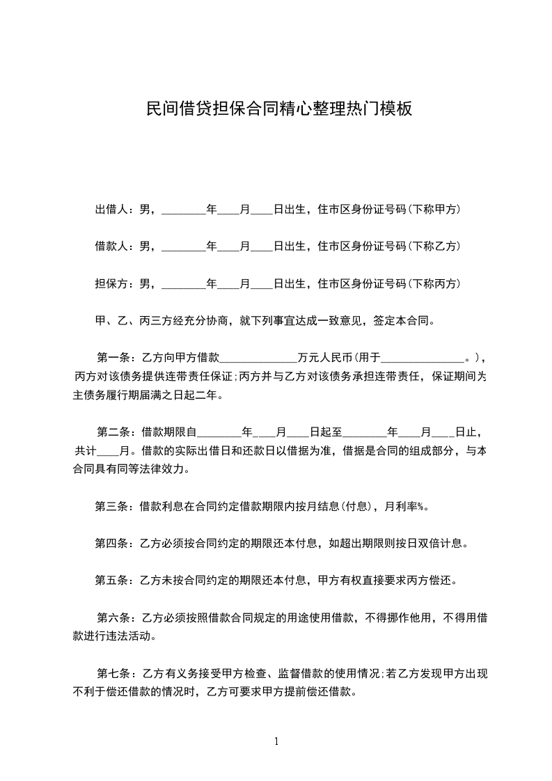 一、乙方同意就甲方与_________(以下称借款人)之间签订的《借款合同》(编号:_________年_________字第_________号)向甲方提供担保。