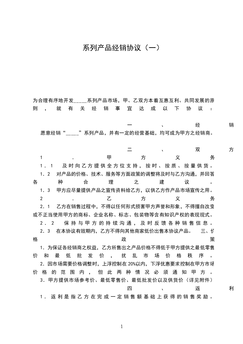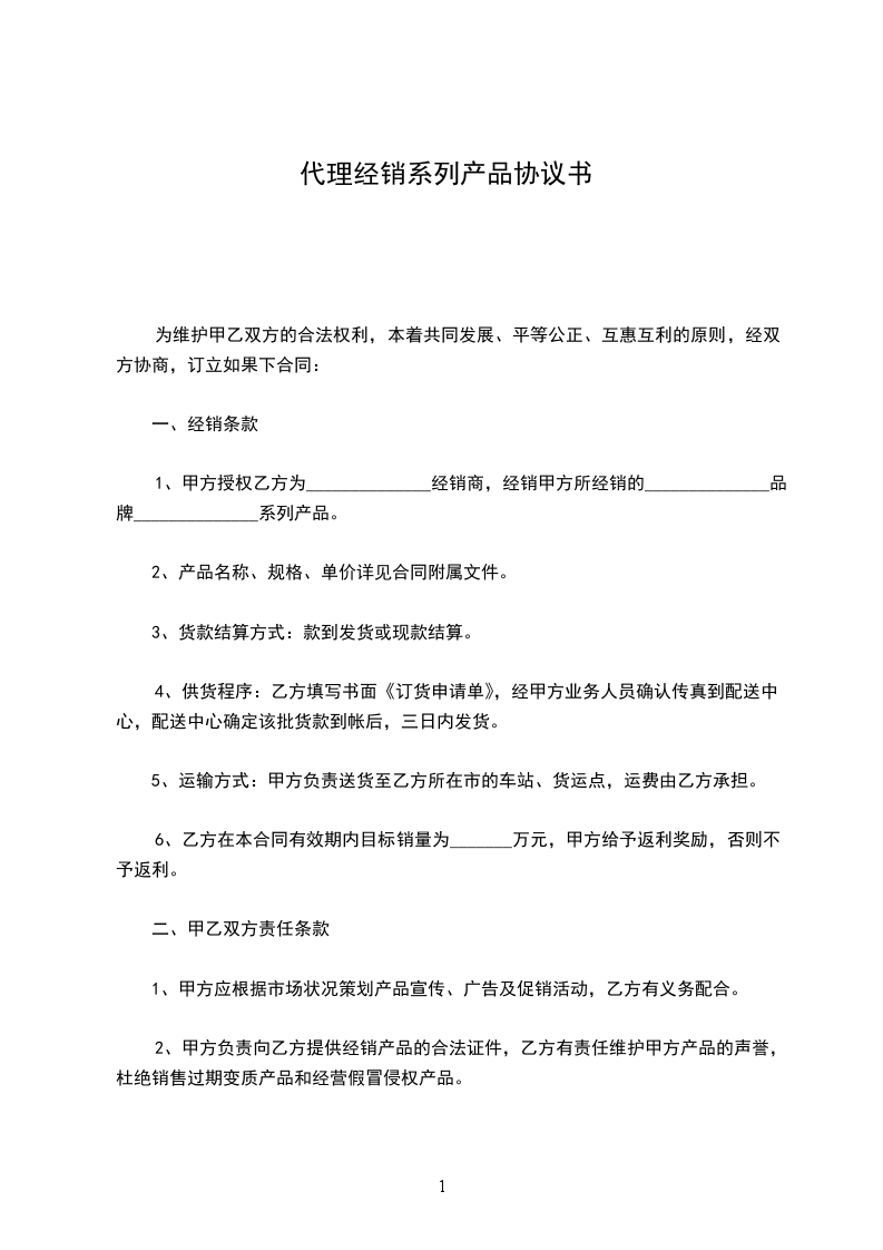 为合理有序地开发_____系列产品市场,甲、乙双方本着互惠互利、共同发展的原则,就有关经销事宜达成以下协议: