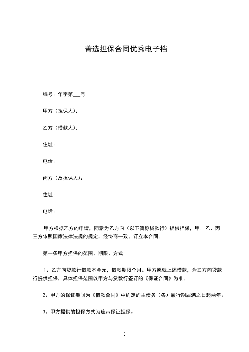 1、乙方向贷款行借款本金元,借款期限个月。甲方愿就上述借款,为乙方向贷款行提供担保,具体担保范围以甲方与贷款行签订的《保证合同》为准。