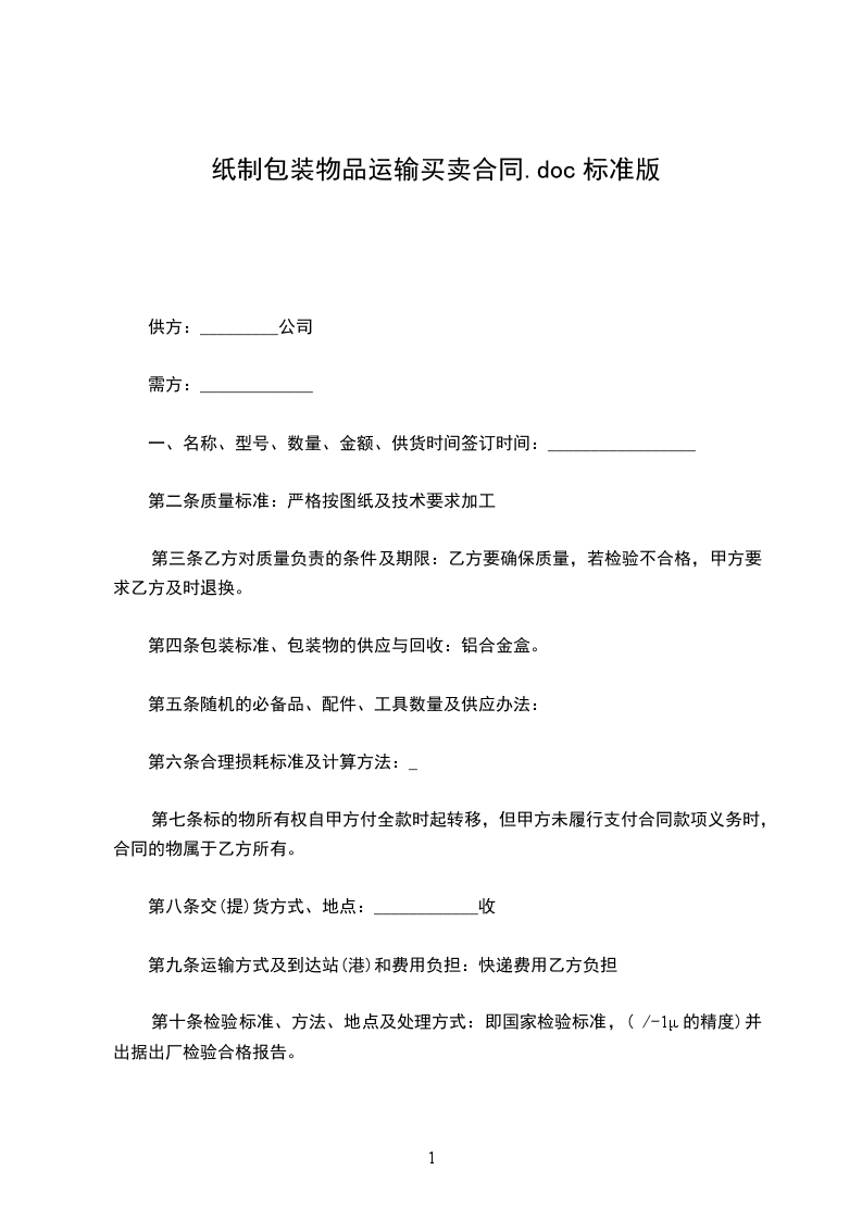 二、运输方式及费用负担:快递、物流、空运,费用由供方负担。