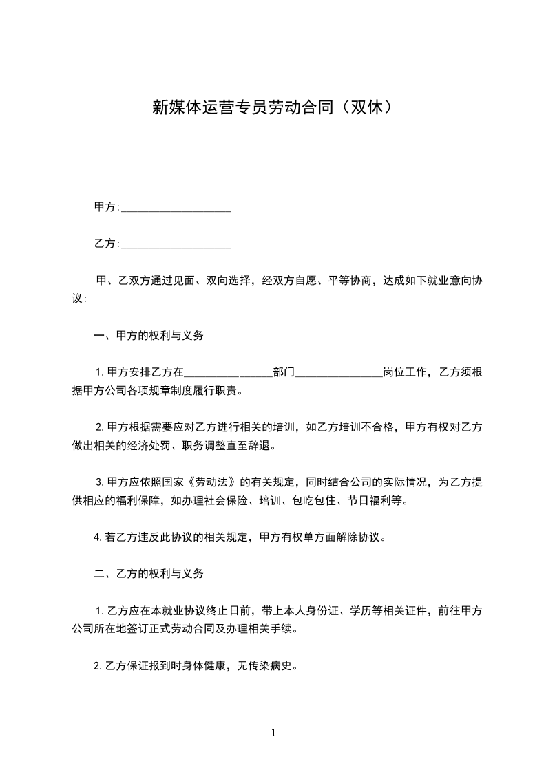 甲方(用人单位)名称:________________________