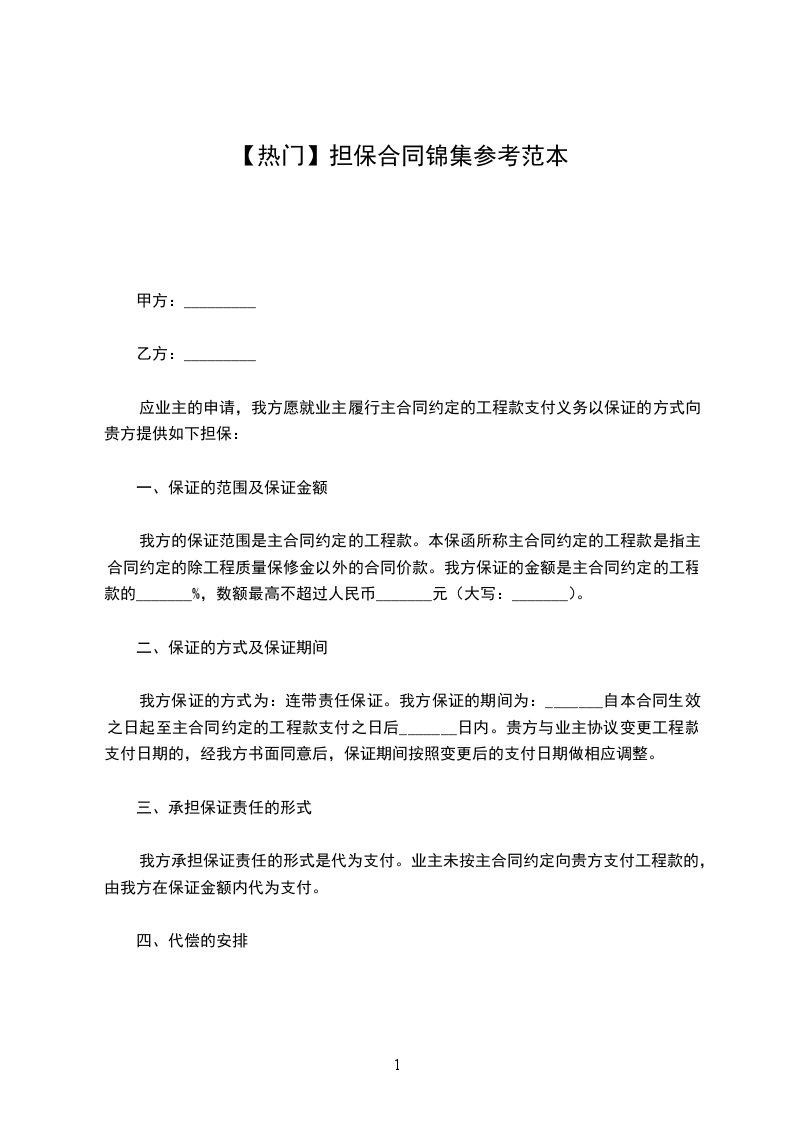 我方保证的方式为:连带责任保证。我方保证的期间为:_______自本合同生效之日起至主合同约定的工程款支付之日后_______日内。贵方与业主协议变更工程款支付日期的,经我方书面同意后,保证期间按照变更后的支付日期做相应调整。