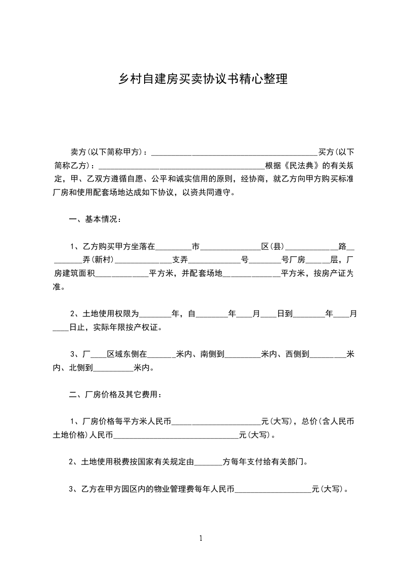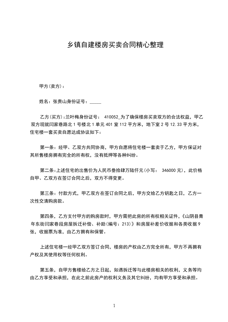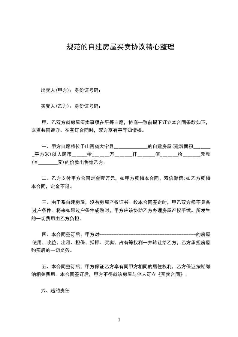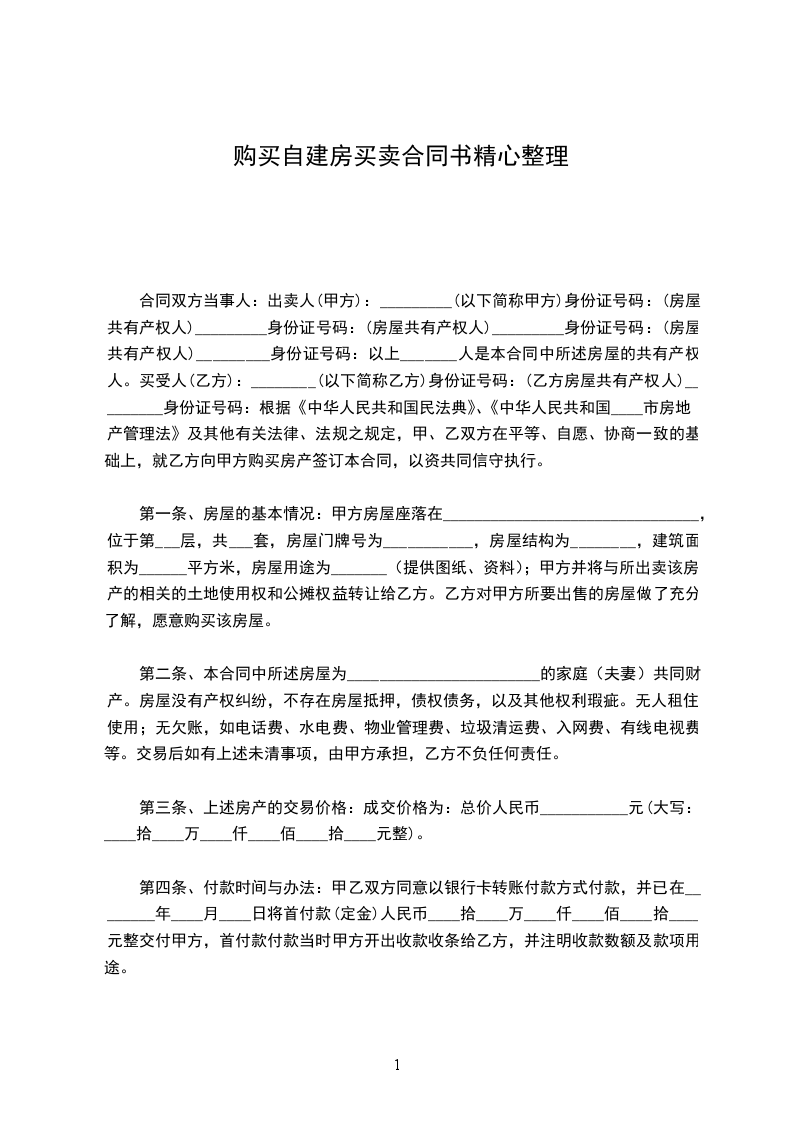 一、甲方将其自建房屋以总价出售给乙方。乙方自愿以上述价格向甲方认购该房屋。