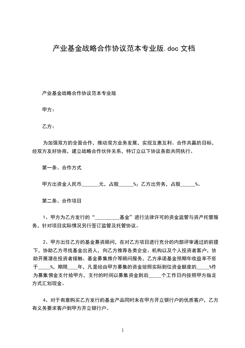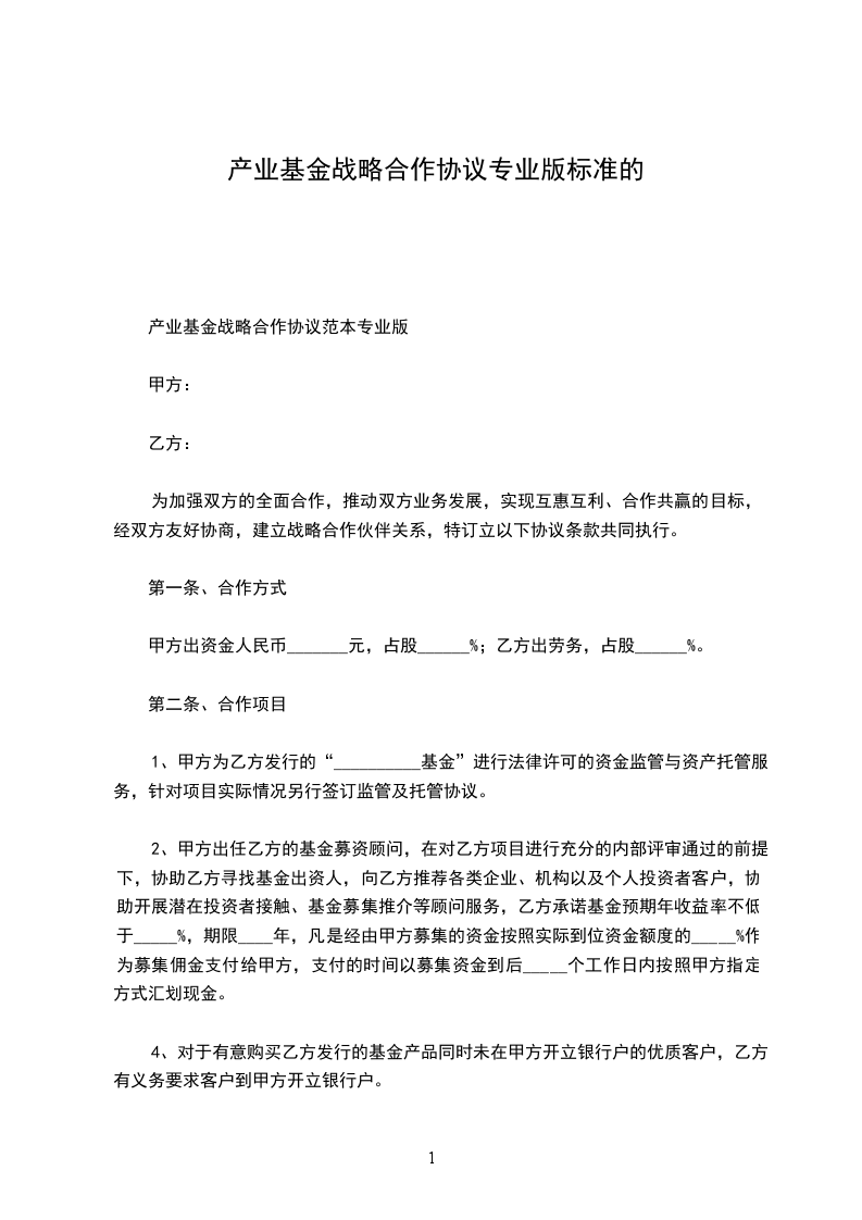 1、甲方为乙方发行的“__________基金”进行法律许可的资金监管与资产托管服务,针对项目实际情况另行签订监管及托管协议。
