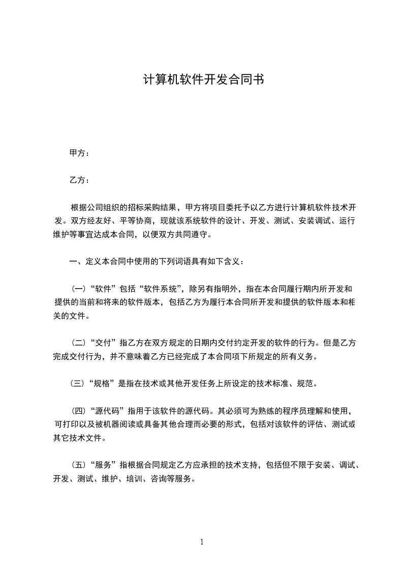 根据公司组织的招标采购结果,甲方将项目委托予以乙方进行计算机软件技术开发。双方经友好、平等协商,现就该系统软件的设计、开发、测试、安装调试、运行、维护等事宜达成本合同,以便双方共同遵守。