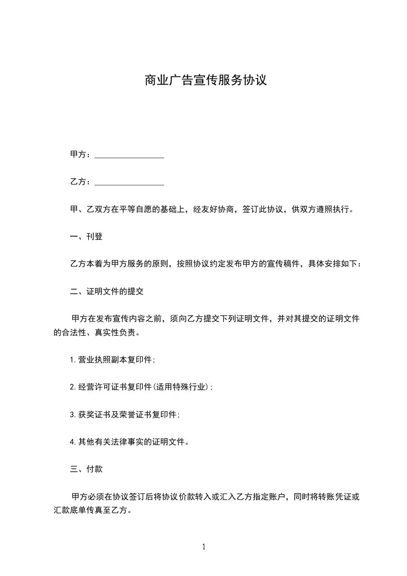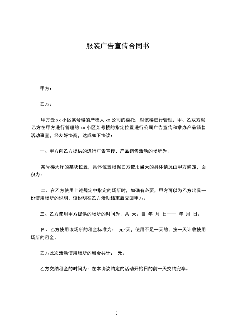 一、甲方向乙方提供的进行广告宣传、产品销售活动的场所为: