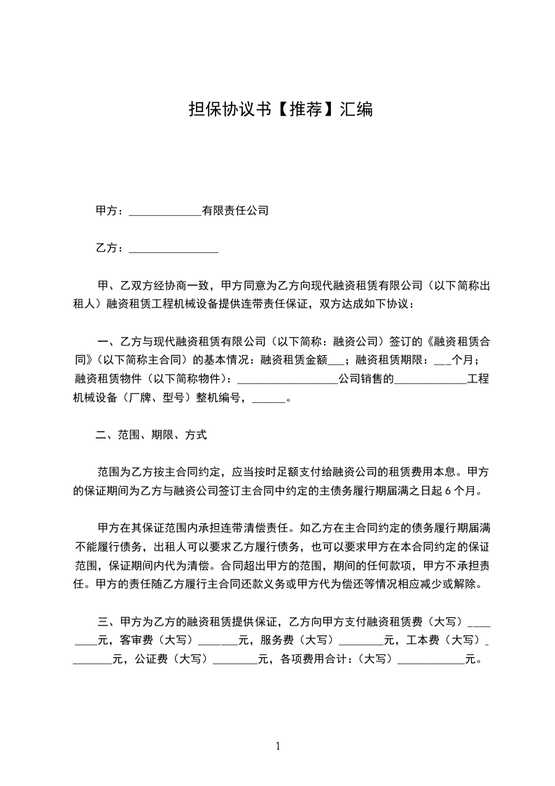 甲、乙双方经协商一致,甲方同意为乙方向现代融资租赁有限公司(以下简称出租人)融资租赁工程机械设备提供连带责任保证,双方达成如下协议: