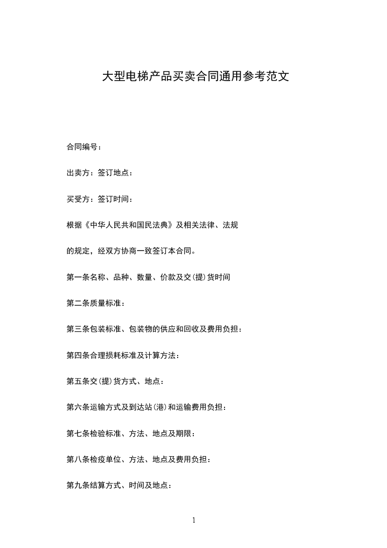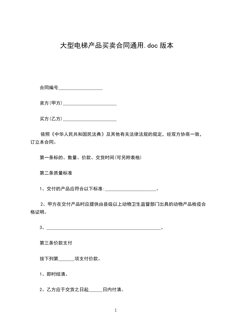 第一条名称、品种、数量、价款及交(提)货时间