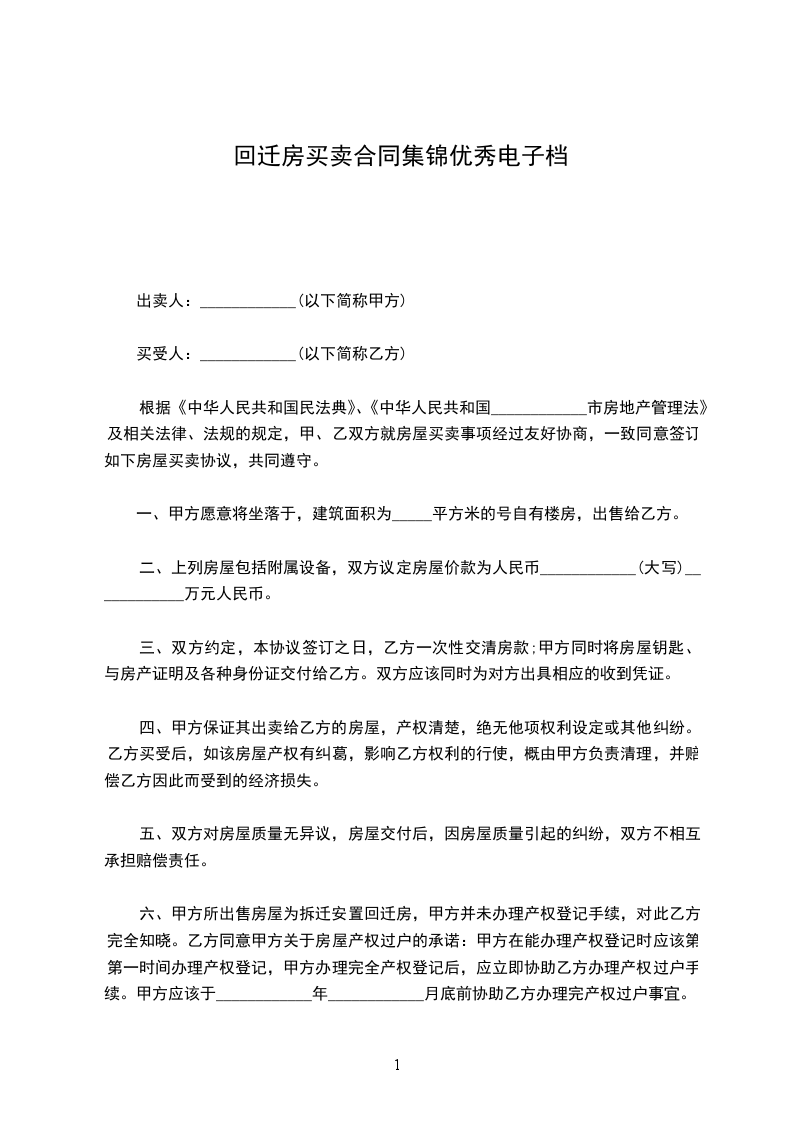 六、甲方所出售房屋为拆迁安置回迁房,甲方并未办理产权登记手续,对此乙方完全知晓。乙方同意甲方关于房屋产权过户的承诺:甲方在能办理产权登记时应该第第一时间办理产权登记,甲方办理完全产权登记后,应立即协助乙方办理产权过户手续。甲方应该于____________年____________月底前协助乙方办理完产权过户事宜。