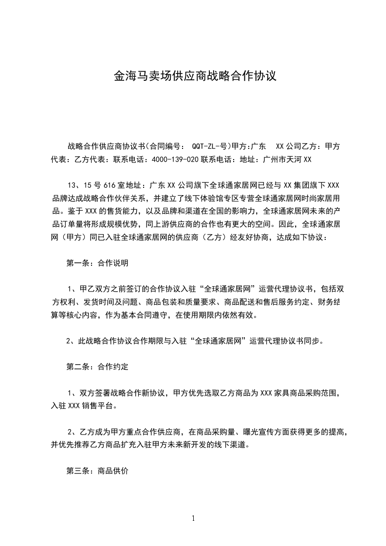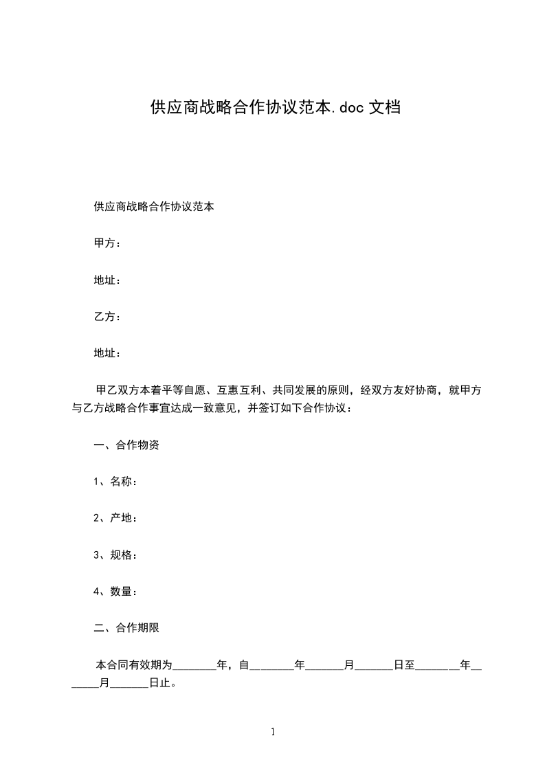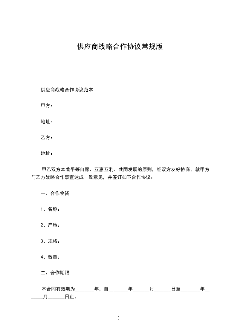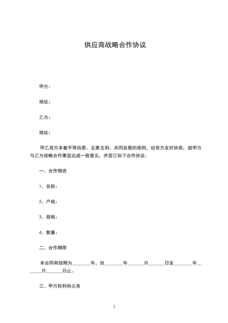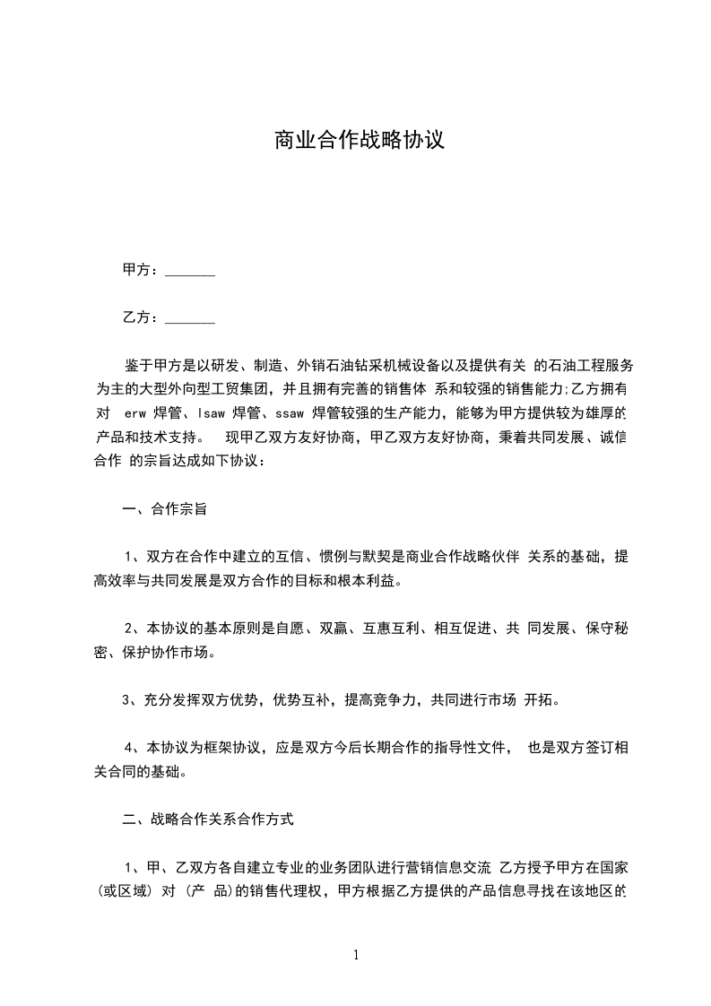 甲乙双方本着平等自愿、互惠互利、共同发展的原则,经双方友好协商,就甲方与乙方战略合作事宜达成一致意见,并签订如下合作协议: