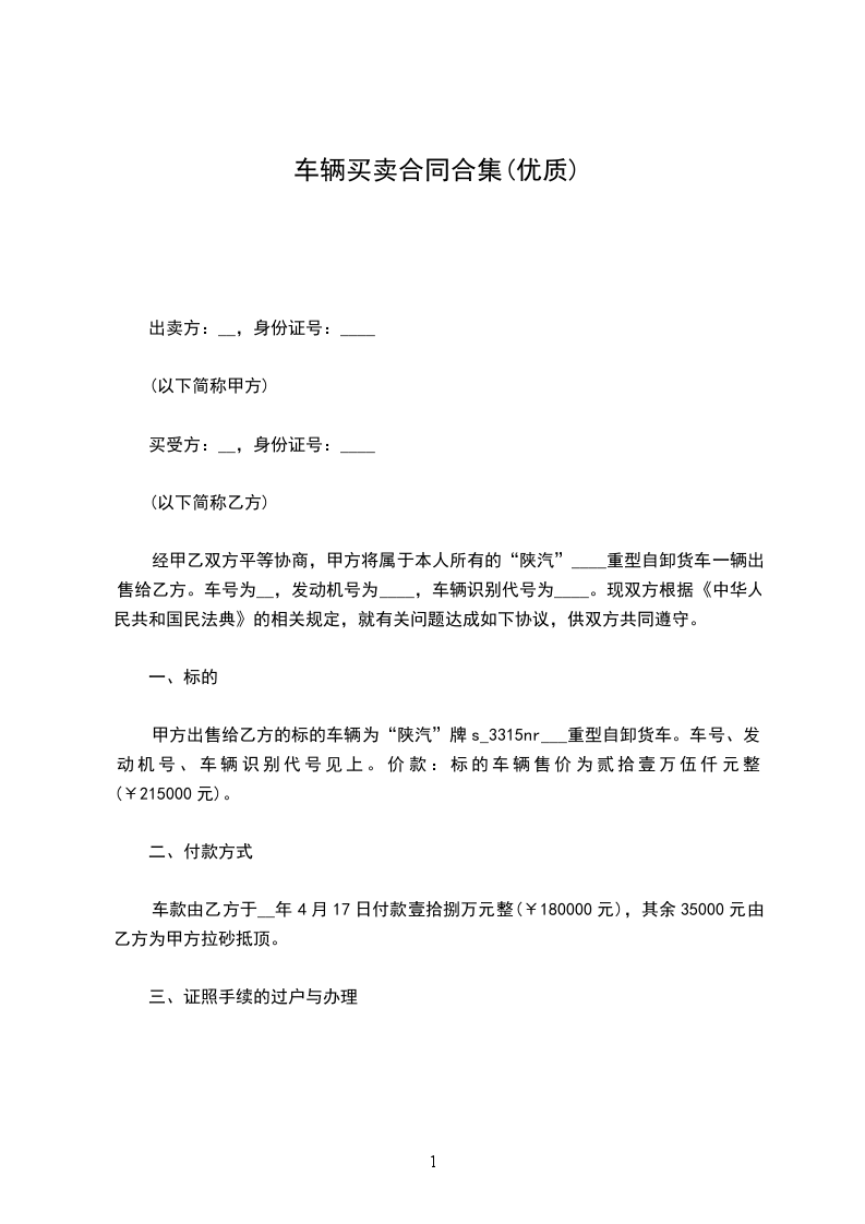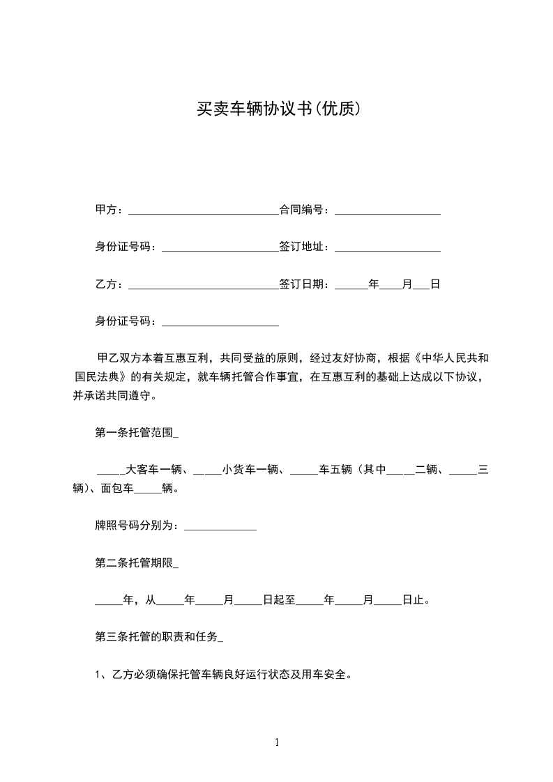 甲、乙双方就车辆买卖事宜达成以下协议,共同遵照执行: