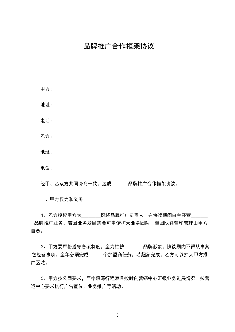 经甲、乙双方共同协商一致,达成_______品牌推广合作框架协议。