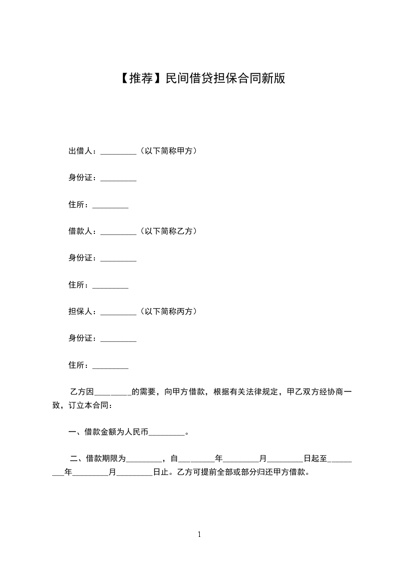 担保人(以下简称丙方):